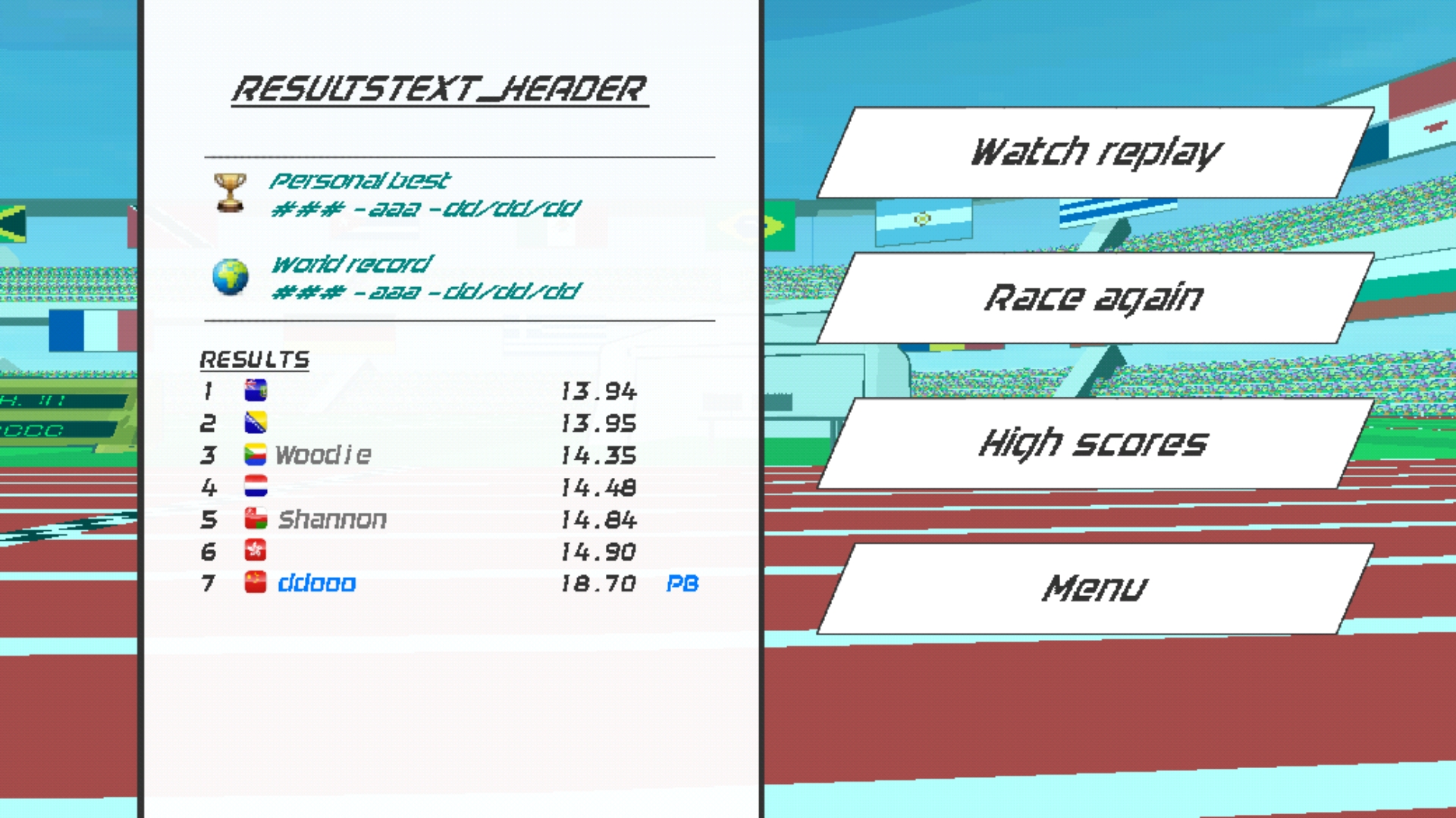 1、启动速度之星中文最新版,首先进入个性化创建页——选择代表国家旗帜,并设定独一无二的运动员代号,开启你的田径生涯档案。