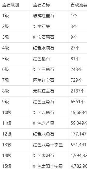 宝石级别:共15阶,遵循“三合一”合成规则——每3颗低阶宝石可在铁匠铺100%成功率合成1颗高阶宝石。以红宝石为例,从1阶升至15阶所需原始材料量呈指数级增长(3¹⁴),凸显高阶宝石的稀缺价值。