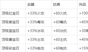 下表为顶级宝石所附带的核心增益效果: