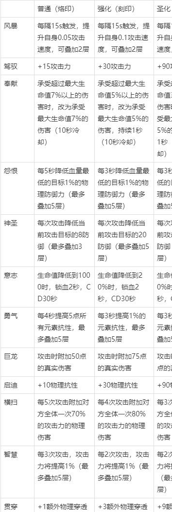 符文级别:分“烙印”(普通)、“刻印”(强化)、“符文”(圣化)三级,同样适用三合一合成法则,成功率恒定100%。各级别符文在技能增幅、冷却缩减、暴击强化等方面提供阶梯式成长支撑。