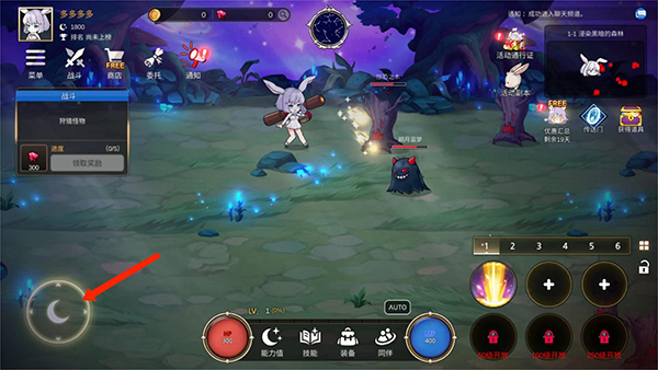 4、成长反馈具象化:角色每升一级,UI边框泛起微光;突破大关卡后,主城背景由灰暗转为银辉漫溢,视觉变化直观传递「月光回归」进程。