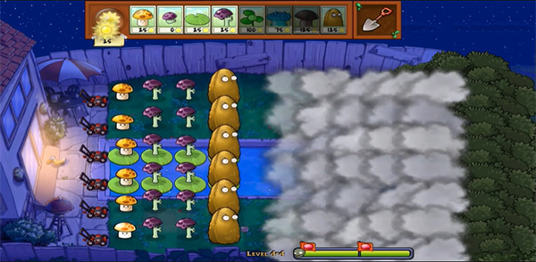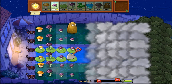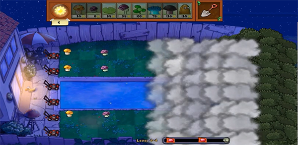4、本版独有“云幕遮蔽”机制:顶部浮动云层会遮挡右侧区域,使僵尸出现时机与数量不可预知,大幅提升临场决策压力与紧张感。