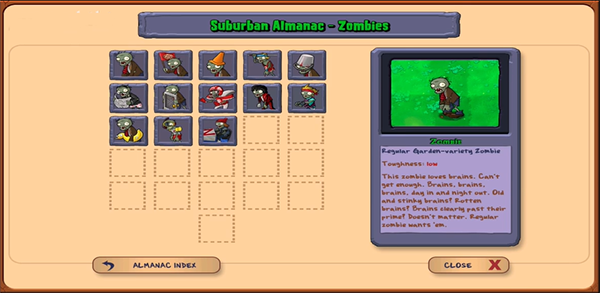 2、点击任意僵尸或植物图标,即可弹出详细信息面板,查看其生命值、攻击方式、特殊能力及克制关系。
