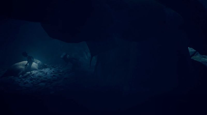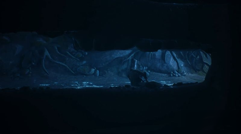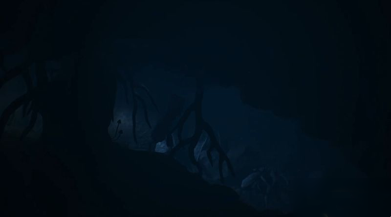 待猎人照向他处后赶紧钻过右侧地洞。