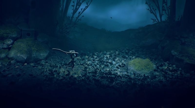 一路砸枯叶,触发陷阱,向右小心前进。