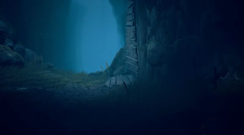 收集完影子后返回,沿着坠落的吊桥木板爬上悬崖。