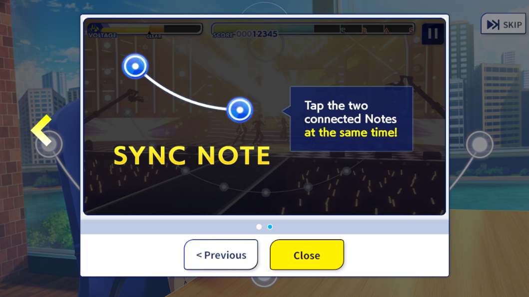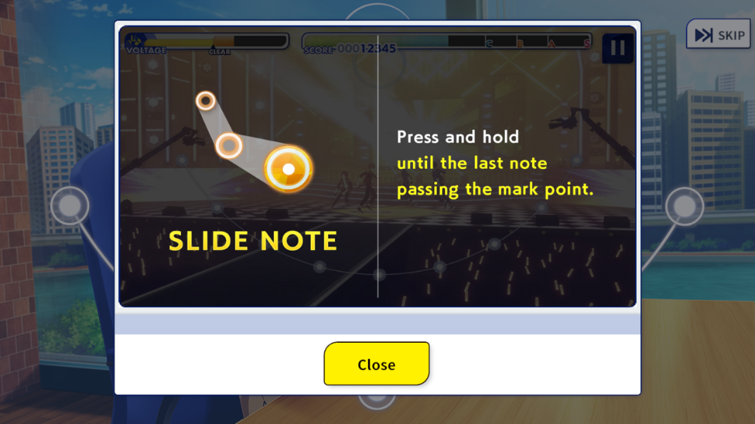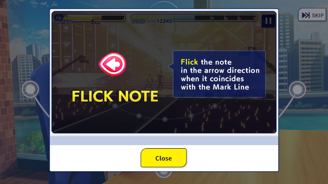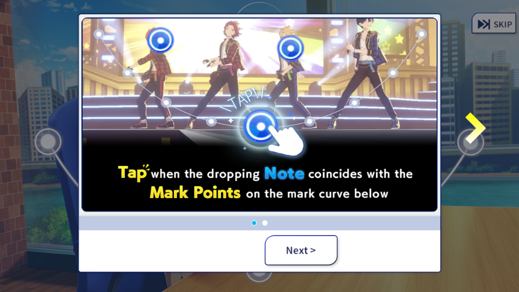 3、教程阶段将直观演示核心玩法逻辑:当蓝色音符精准落至下方轨道白点时,及时点击触发判定;