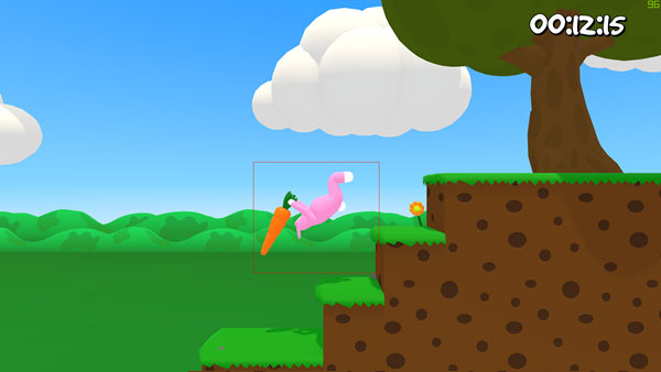2、精准抓取有讲究:靠近后长按抓取键,必须对准胡萝卜的根部或尾端(非中部),否则会像捏住棉花糖一样打滑。抓稳后可自由翻滚、腾空、甚至倒挂,胡萝卜始终牢牢“焊”在爪中。