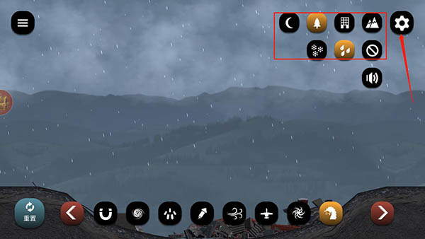 7、右上角「世界设置」支持切换四季气候、调整大气密度、启用极光/沙尘暴等环境滤镜;