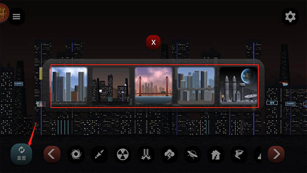 1、启动后点击「场景重置」进入城市画廊,可选择赛博朋克港区、雪山环抱古城、悬浮群岛都市等主题背景;
