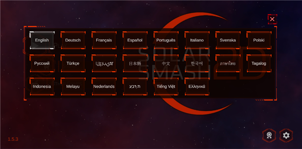 1、进入游戏主界面,点击右下角齿轮图标打开设置菜单,选择语言选项中的“English”进入语言列表;