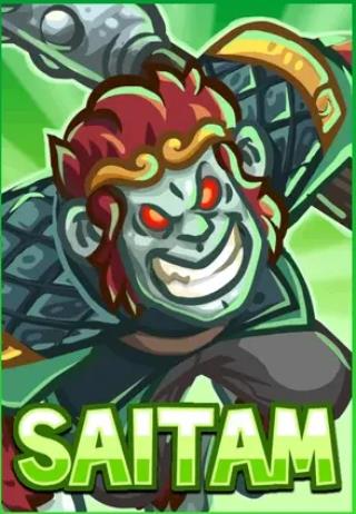 十三、神猴 塞塔姆(Saitam):团队增益型法师,核心价值在于“神怒”——全图范围提升65%伤害的终极光环,与图腾塔、火焰塔等持续伤害型防御建筑形成恐怖联动。回旋与连击提供可靠单体压制,封印之掌兼具控制与沉默,神性被动则缓解其生存短板,使其在中后期团战中愈发耀眼。