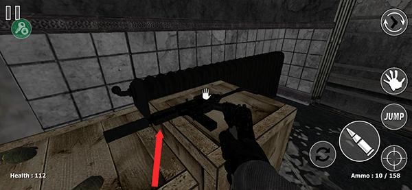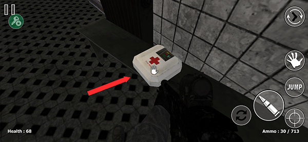 3、左手滑动虚拟摇杆控制位移与转向,右手集成四维交互区:轻按射击、长按蓄力爆头、双指上滑跳跃翻越障碍、右下角独立图标实现瞬时换弹/开镜/道具切换。