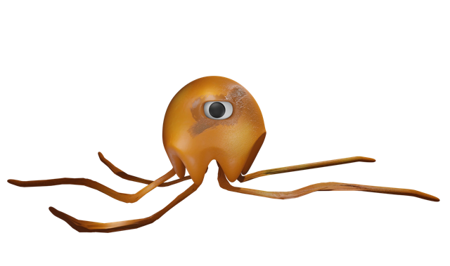 悬浮于半空的橙色水母形态实体,钟形躯干中央嵌着一枚不断收缩扩张的竖瞳。六根触手并非随意摆动:四根垂落如传感器探针,实时扫描空气震动;另两根则高举似在模拟“欢迎”姿态——而这恰恰是最危险的信号。