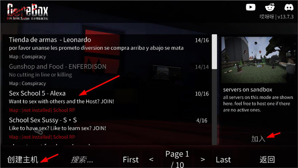 2、在服务器列表中筛选活跃房间,查看当前人数与地图信息,点击目标房间即可申请加入;