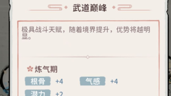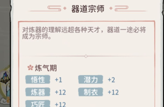 1、我们选择的天赋会影响掌门的战力,当然也会影响炼丹、炼器收益,如果你想要让掌门当主C,推荐选择“先天灵脉+武道巅峰”,在其他情况下,推荐选择“丹道宗师+器道宗师”。