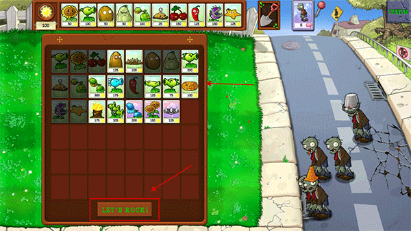 1、开局进入植物选择界面,根据首波僵尸特性预设3-5种核心单位,确认阵容后点击“Let’s Rock”启动战役