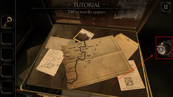 转向车厢角落的旧皮箱,点击锁扣并横向拖动,箱体自动弹开第二层夹板——其中静卧一副泛着冷光的青铜目镜。