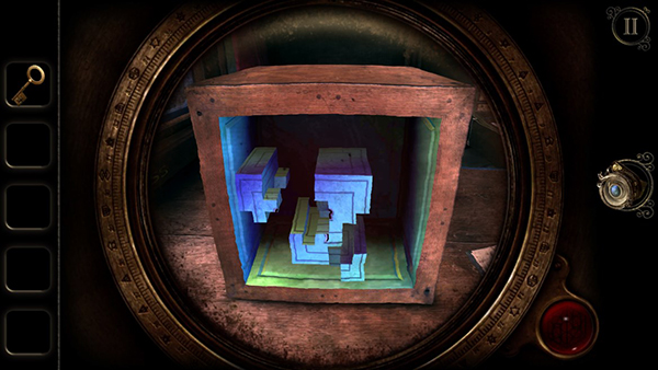 重返木盒,目镜视角下桌面浮现出七枚悬浮几何方块。按边缘纹路与色斑逻辑将其拼合成完整六芒星图案,触发机关嗡鸣。