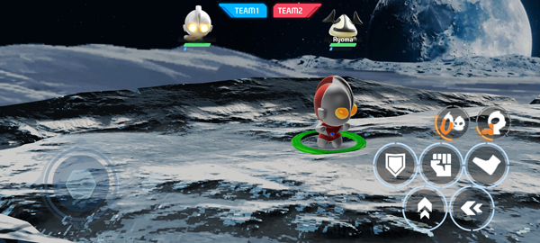 1、游戏的操作采用了经典的摇杆和按键控制,这也是大多动作类游戏所使用的方案,通过左下角的摇杆可以控制奥特曼走位,右下角的攻击按键可以控制它们进行手和脚的进攻,当然也包括了特殊技能按钮能触发奥特曼的大招了。