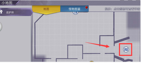2、大门打开后打开游戏小地图查看当前位置,现在我们需要来到下图标记的地点。