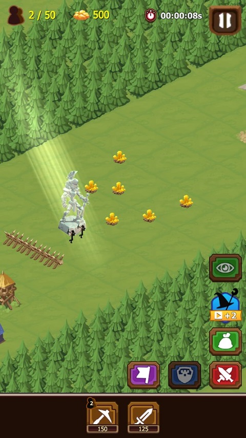开局自动配置两名基础劳工,持续开采金矿以维持经济运转。
