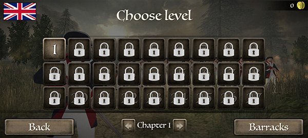 2、首步选定所属阵营(英国或美洲联合力量),再挑选对应历史阶段的战役地图。