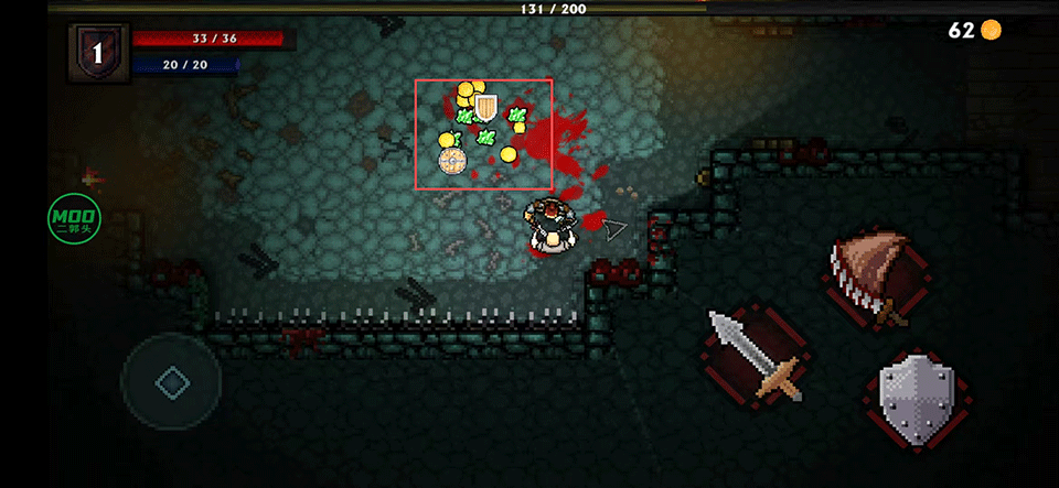 4、击败敌人后会掉落金币、药水及随机装备,靠近物品即可自动纳入背包,无需手动拾取操作;