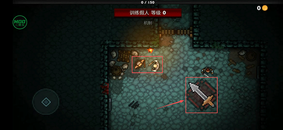 2、使用左下角虚拟摇杆控制角色移动,前往地图中央的导师处触发剧情引导;