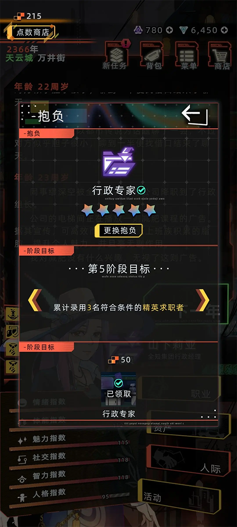 1、单世代最多完成两次完整抱负线,首次完成后需年满35岁方可开启第二条线;抱负评级最高五星(多数五星目标需持续投入3-5年时间)