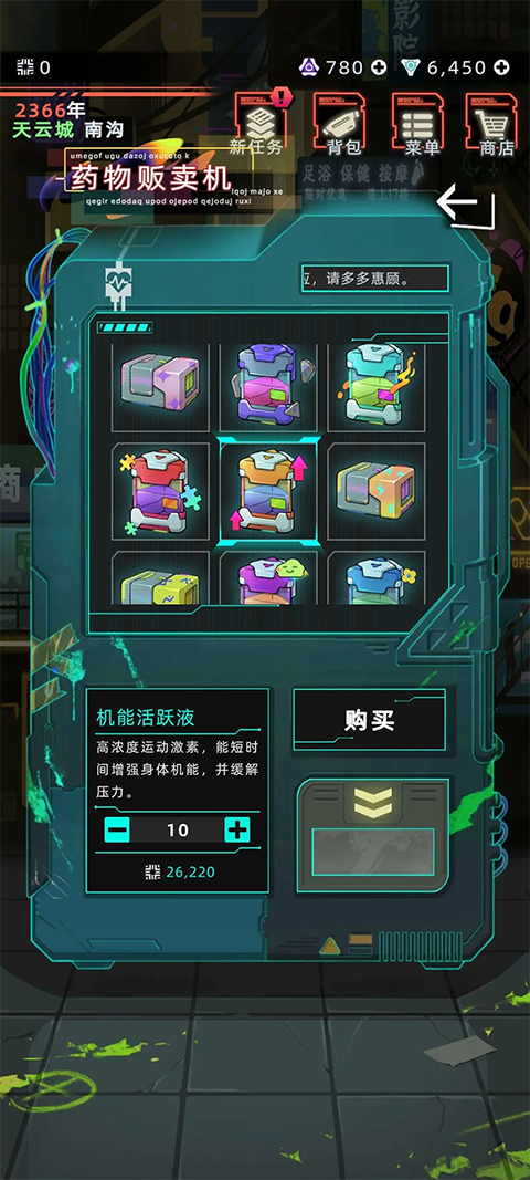 2、在城市公共设施中定位药物贩卖终端,购入「机能活跃液」(初代市场参考价约2200信用点/瓶)