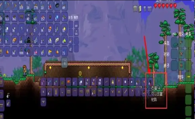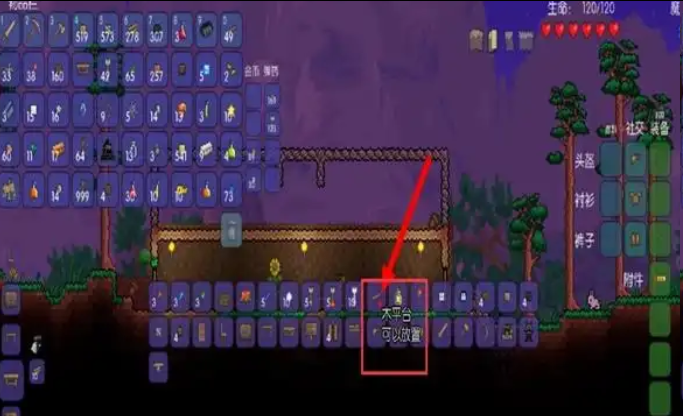 8、然后在工作台再找到【木平台】,在1层和2层之间的中间放上。