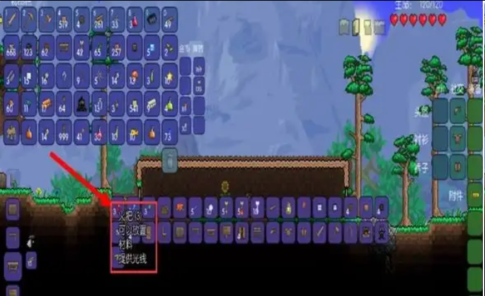 7、墙体建好后,在工作台找到【火把】,把上下2层都加上火把。