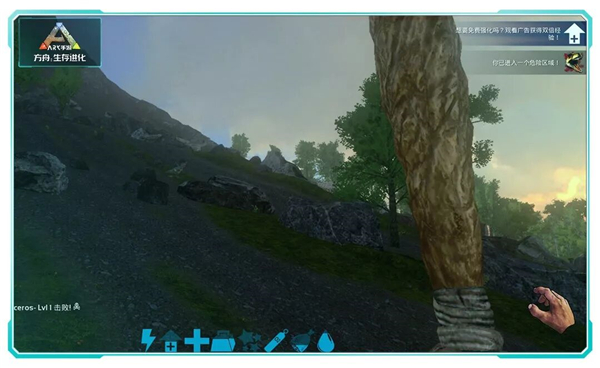 4、接下来准备阶段到此结束,接下来找到自己想要驯服的恐龙,然后使用拳头,棒子这种钝器来不断攻击恐龙,切记不要使用弓箭这种锐利的武器。对于新手使用这些简单的手段就能击晕。而随着慢慢发展还会用到更加高级的致晕道具如:麻醉针,炮弹等!