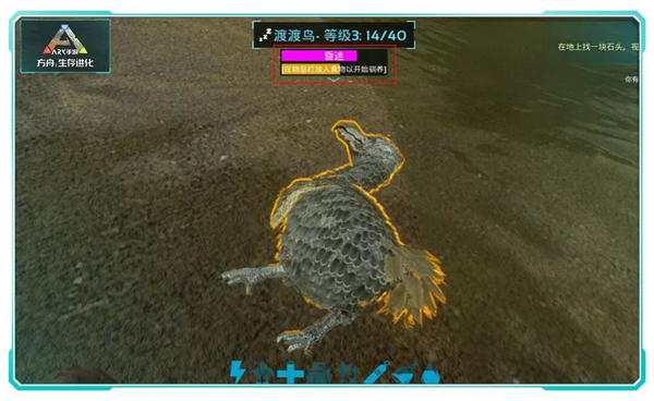 5、这里有一些经验需要参考一下,尽量将想要驯服的怪物带到狭小的角落处驯服,这样既不会被这条恐龙的同类攻击也不会有其他的猎食者来阻碍驯服。