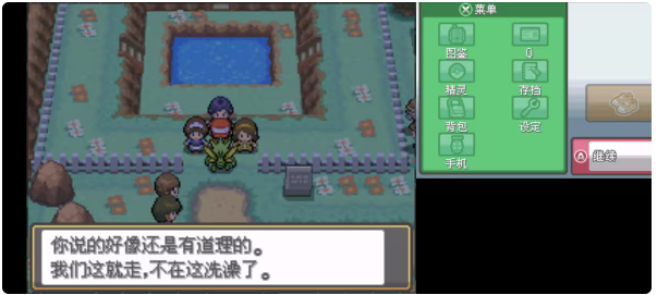 跟npc对话得知大少带着两个女朋友泡澡(真会玩)那我们把他赶走吧