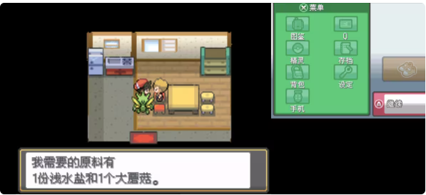 先不急着去换,先一个一个对话,右下角的小屋里有厨子要我们帮忙找食材,浅水盐在等下枯叶市右侧小商贩有卖,大蘑菇要去华蓝市右侧的9号道路找蘑菇商人购买购买