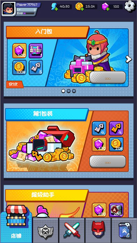2、玩家可以在商店中使用钻石购买升级材料,增强自己的英雄。