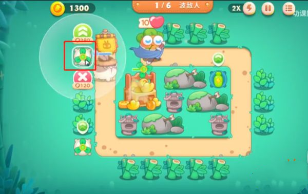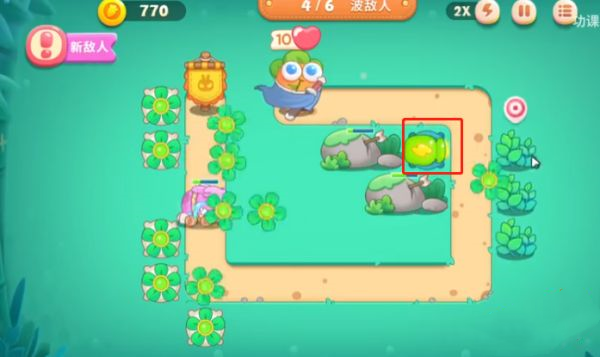 4、终点前部署一座炮台,优先攻击下方顽石障碍,打通最后防线。