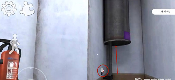 24、灭火器旁边有一条管道,这条管道是通往最初笼子的位置。