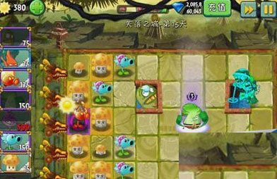 2、甜菜守卫是防御神器,配合上冰冻豌豆,可以起到很好的拖延作用,等到僵尸多的时候,再放能量豆进行清屏。