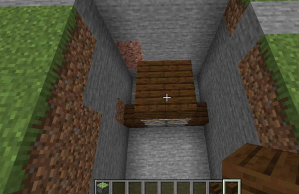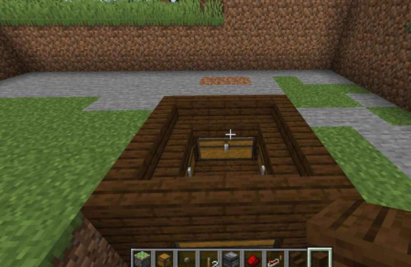 6、最后我们再铺放木板进行隐藏,再摆好1个按钮就做好我们的地板机关啦!