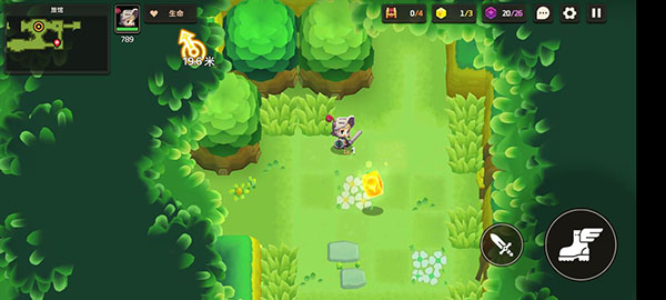 第三处入口被藤蔓遮蔽,打开小地图可见半透明路径标记。
