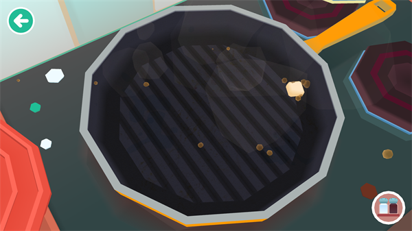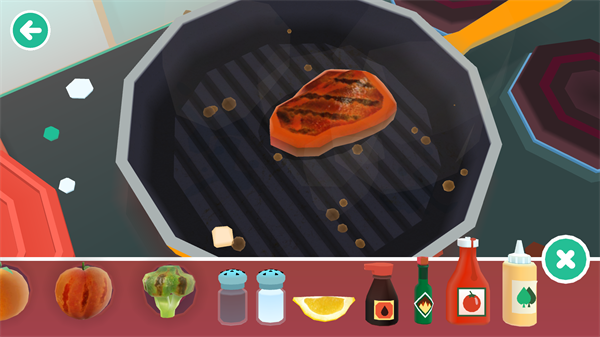 游戏内置榨汁机、平底锅、烤箱、菜刀和调味台五大核心厨具,每种工具都经过细致拟真设计:煎牛排会滋滋作响、橙子入榨汁机会迸出水花、西兰花进烤箱后边缘微微卷曲……细节之处尽显用心。关卡并非靠分数评判,而是以“小食客是否开心享用”为通关钥匙——一个咧嘴大笑、拍手欢呼的动画,就是对孩子创意最温暖的肯定。