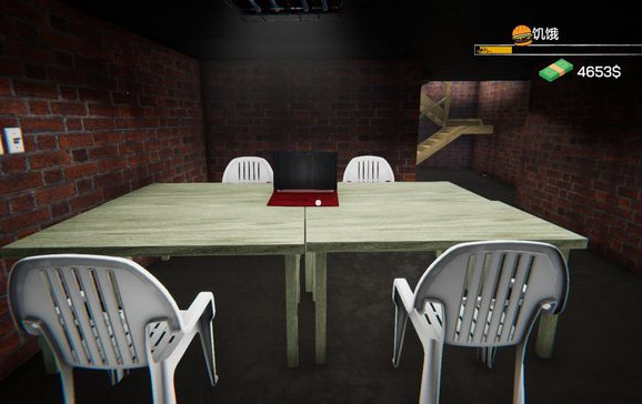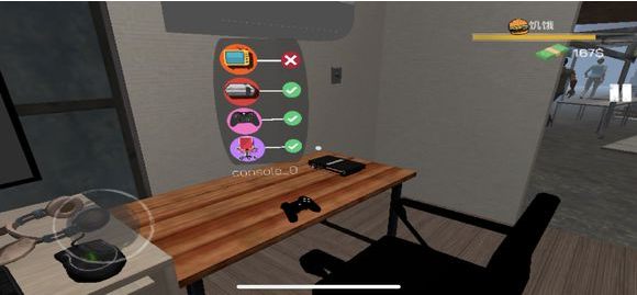 卧室醒来后,注意右上角饥饿值——立即穿过走廊进入对面厨房,打开冰箱取食补充体力(Shift键加速移动)。饱腹后离开公寓,开启你的创业征途。