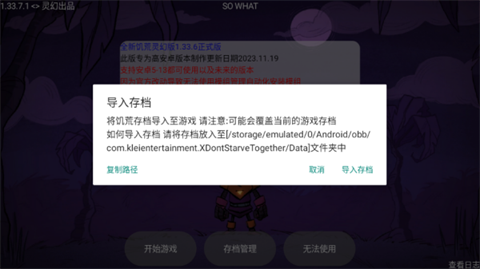 3、将存档文件放到下图中的文件路径中,然后点击导入存档即可。