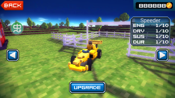 游戏还嵌入轻量级建造系统:每次通关后返回家园,可用收集到的农场残骸重建田舍、修缮围栏、铺设小径。在此空间中,你不仅能购买新车、更换轮毂与尾翼,更能以像素粒为单位精细调色——从引擎盖反光色到座椅缝线纹,每一处细节皆由你定义。