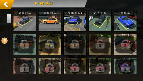 关卡列表按「教学→进阶→挑战」分阶段开放,首章包含坡道起步、窄巷调头、S弯入库等核心技巧训练