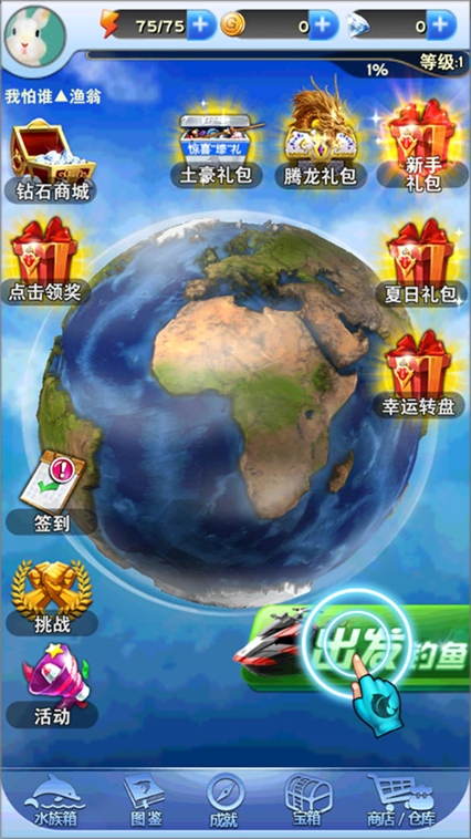 1、下载安装好游戏,进入游戏,点击出发钓鱼。