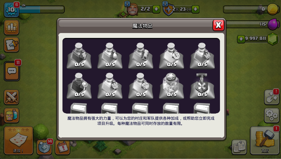 魔法物品能在游戏中为您提供很多帮助!比如加速升级、填满资源,在您登上巅峰的路上,魔法物品可以发挥重要作用!
